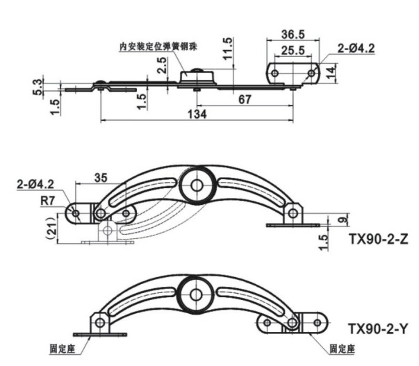 【產品描述】薄型的電柜限位裝置,彈子定位,分左右開門
