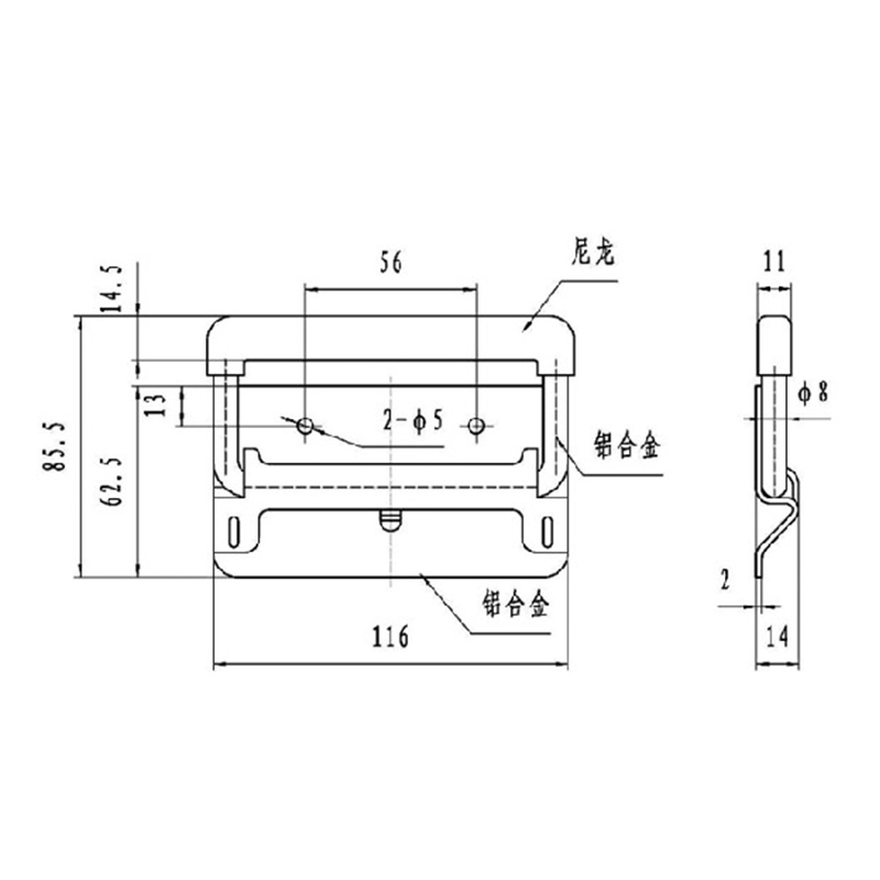 材質:鋁合金基座、拉環;