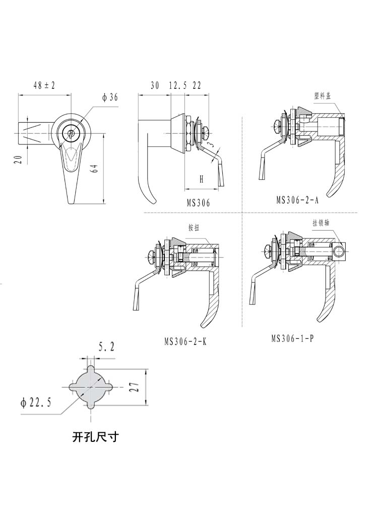 材質及表面處理:鍍鉻鋅合金把手、基座,鍍鋅鋼鋼栓,ABS蓋子,鍍鉻鋼按扭、鎖鈾;