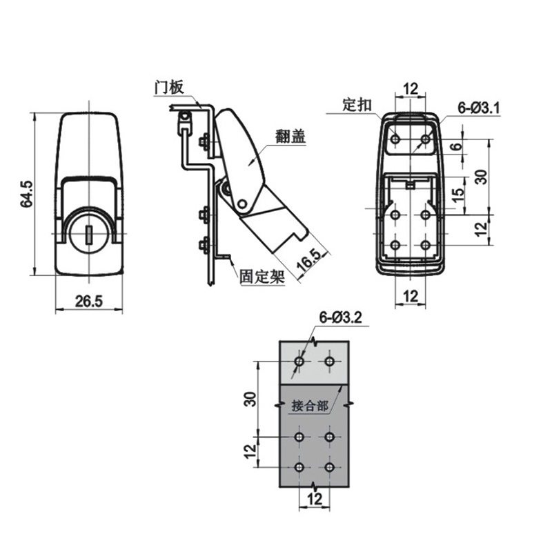 材質及表面處理:鋅合金基座, 翻蓋、固定扣;不銹鋼扣體;