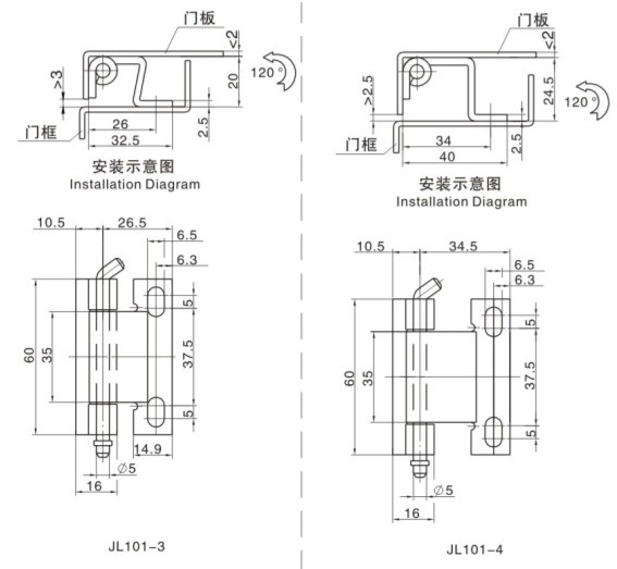 材質及表面處理:鍍鋅鋼鉸鏈,不銹鋼鉸鏈
